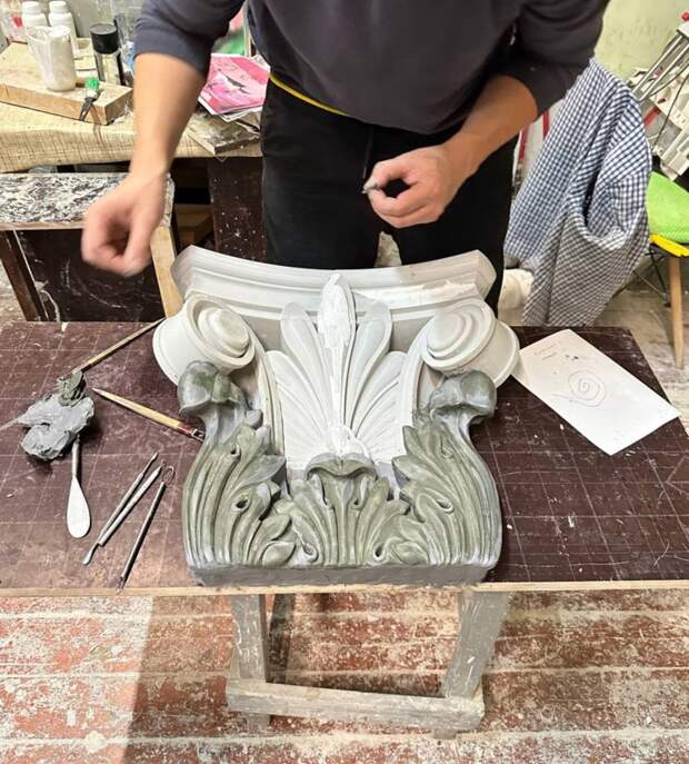 В ходе реставрации фасадов путти демонтировали и восстанавливали в мастерской.
