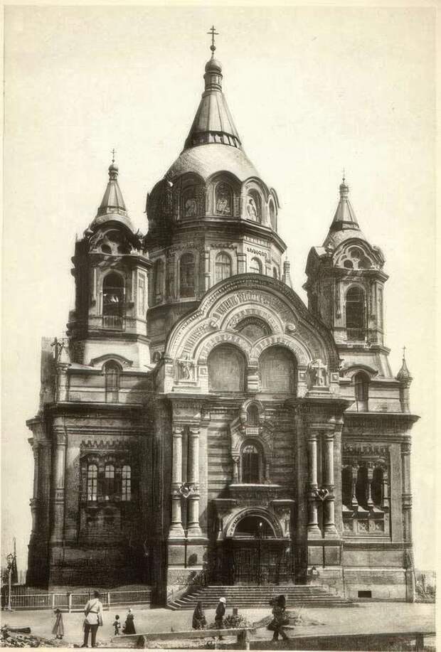 Церковь была построена в 1882 году. Храм, сочетавший элементы неорусского и романского стилей разобрали в 1975 году.
