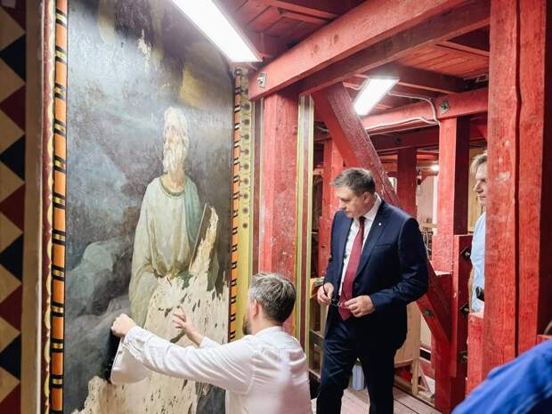 Ход восстановления убранства Богоявленской церкви на Гутуевском острове в Санкт-Петербурге.