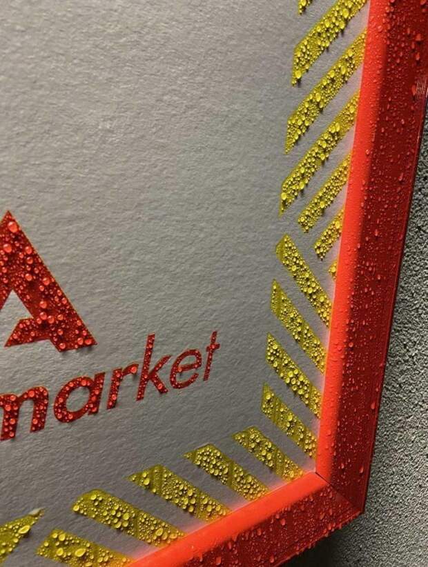 Капли дождя цепляются только за цветные участки этого плаката
