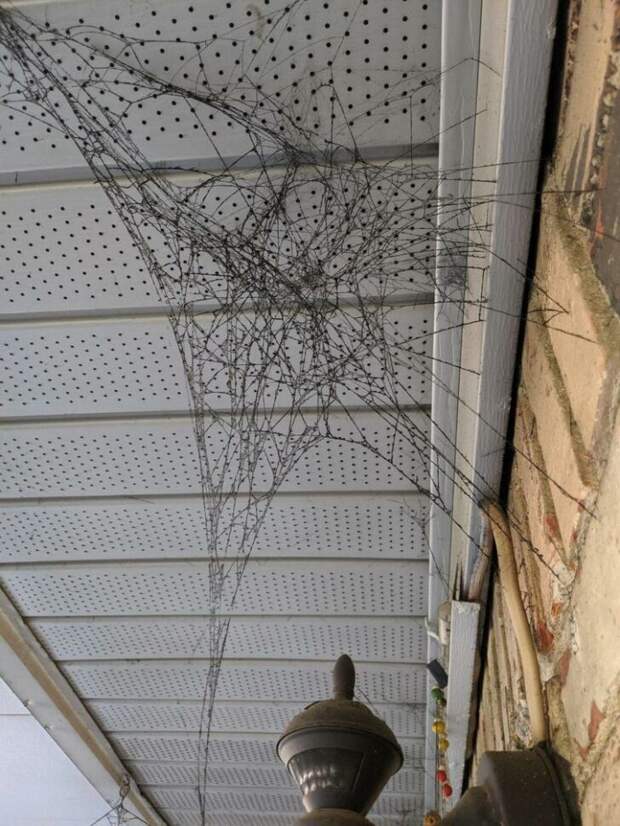 Дым от костра покрасил паутину в черный цвет