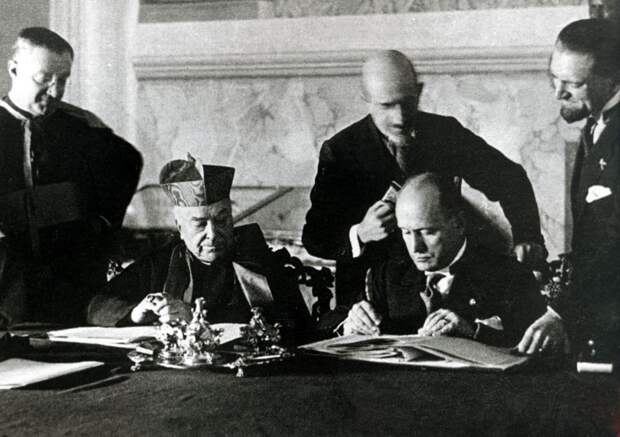 Да и своему существованию, как государству, Ватикан обязан фашистскому режиму. В 1929 году кардинал Пьетро Гаспари и премьер-министр Италии Бенито Муссолини подписали Латеранский конкордат, а фашистский парламент его поддержал. Согласно договору, католицизм признается государственной религией Италии, Ватикан объявляется отдельным государством со своей территорией, радио и возможностью вести собственную внешнюю политику.Союз Гитлера и Ватикана