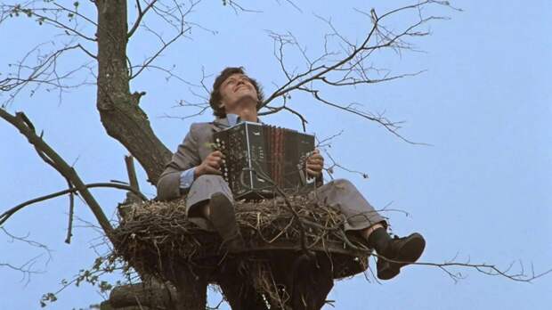 В сцене, когда Василий (Николай Караченцов) играет на гармони, сидя в гнезде аиста, на самом деле гнездо было бутафорским (там колесо, чтоб актеру было удобно сидеть), а аистов привозили из зоопарка, для них даже установили штатную единицу орнитолога. Николай Караченцов боялся высоты и все время смотрел вверх. Играл на гармони и смотрел вверх.
