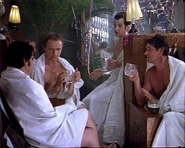 «Эта история уже стала хрестоматийной. "Банные" сцены мы снимали поздней ночью в холодном павильоне "Мосфильма", а вовсе не в Сандунах, как многие думают. Из настоящей бани нам привезли лишь две бочки настоящего пива и пальмы в кадках