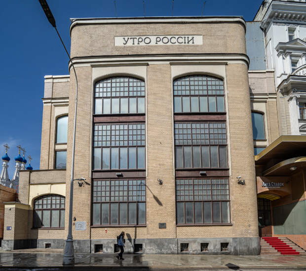 Комплекс зданий типографии «Утро России» был построен в 1907–1908 годах Федором Шехтелем по заказу Павла Рябушинского. На конторском доме комплекса большими буквами написано «УТРО РОССИИ». Архитектурный стиль здания – рациональный модерн. Его фасад украшен огромными окнами-витражами и облицован плиткой кабанчик. Из интерьеров сохранилась лишь парадная лестница Шехтеля (можно заглянуть внутрь, открыв дверь, — лестница будет прямо перед вами). За конторой находится типографский корпус, сегодня полностью превращенный в бизнес- и культурный центр. На его третьем этаже располагается бар-ресторан с романтичным названием «Счастье на крыше» с открытой террасой и прекрасным видом на храм Рождества в Путинках.