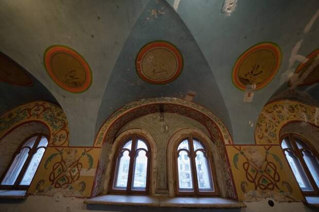 Интерьеры ТеремкаСводы палат частично были расписаны палехскими мастерами имитацией под росписи Собора Василия Блаженного, а в некоторых местах они поновлены.