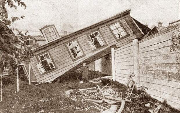 Силы ветра хватало даже на то, чтобы поднимать небольшие деревянные строения.Ещё свидетельства: